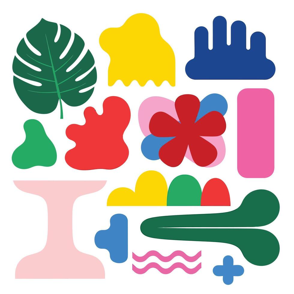 Bold abstract floral and geometric shapes create a modern, fun, and vibrant design element or background vector