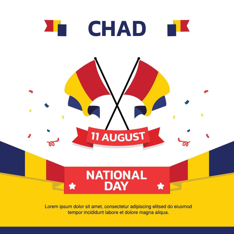 chad Independence Day design, August 11th design element box template with flag and at the bottom on background, ecuador map and flag Free Vector