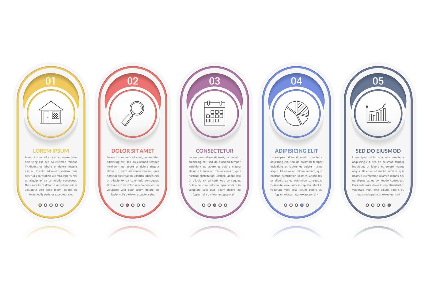 Set of vertical rounded infographic elements with numbers, line icons and place for your text Pro Vector