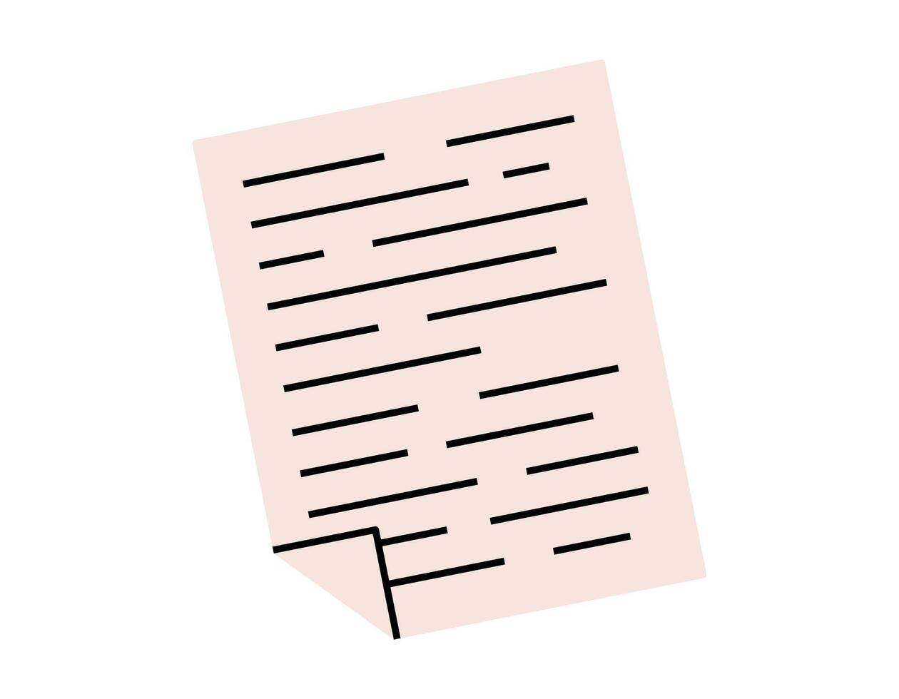 Hand drawn cute cartoon illustration of paper document with text. Flat computer file sticker doodle. Make a plan. Todo list icon. Digital interface concept. Data organization. Isolated. Pro Vector