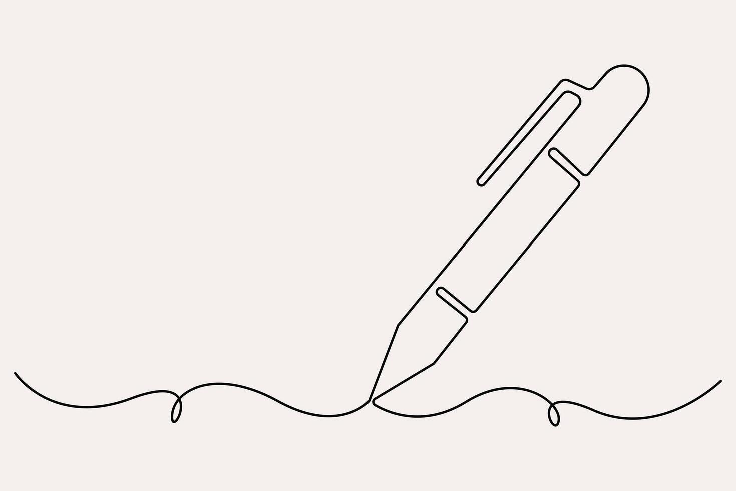 Continuous one line drawing of ink pen in minimal sketch style with clean stroke and writing tool concept Pro Vector