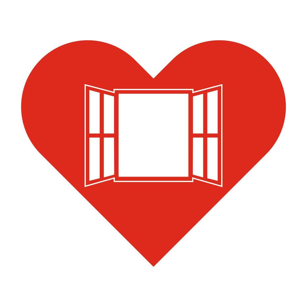 Heart with Open Window. Symbol of Hope and Connection. A large red heart with a stylized open window at its center. Pro Vector