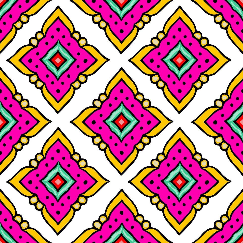 Vibrant Seamless Pattern with Bold Geometric Shapes and Fuchsia Accents, Ideal for Textile and Web Design Pro Vector