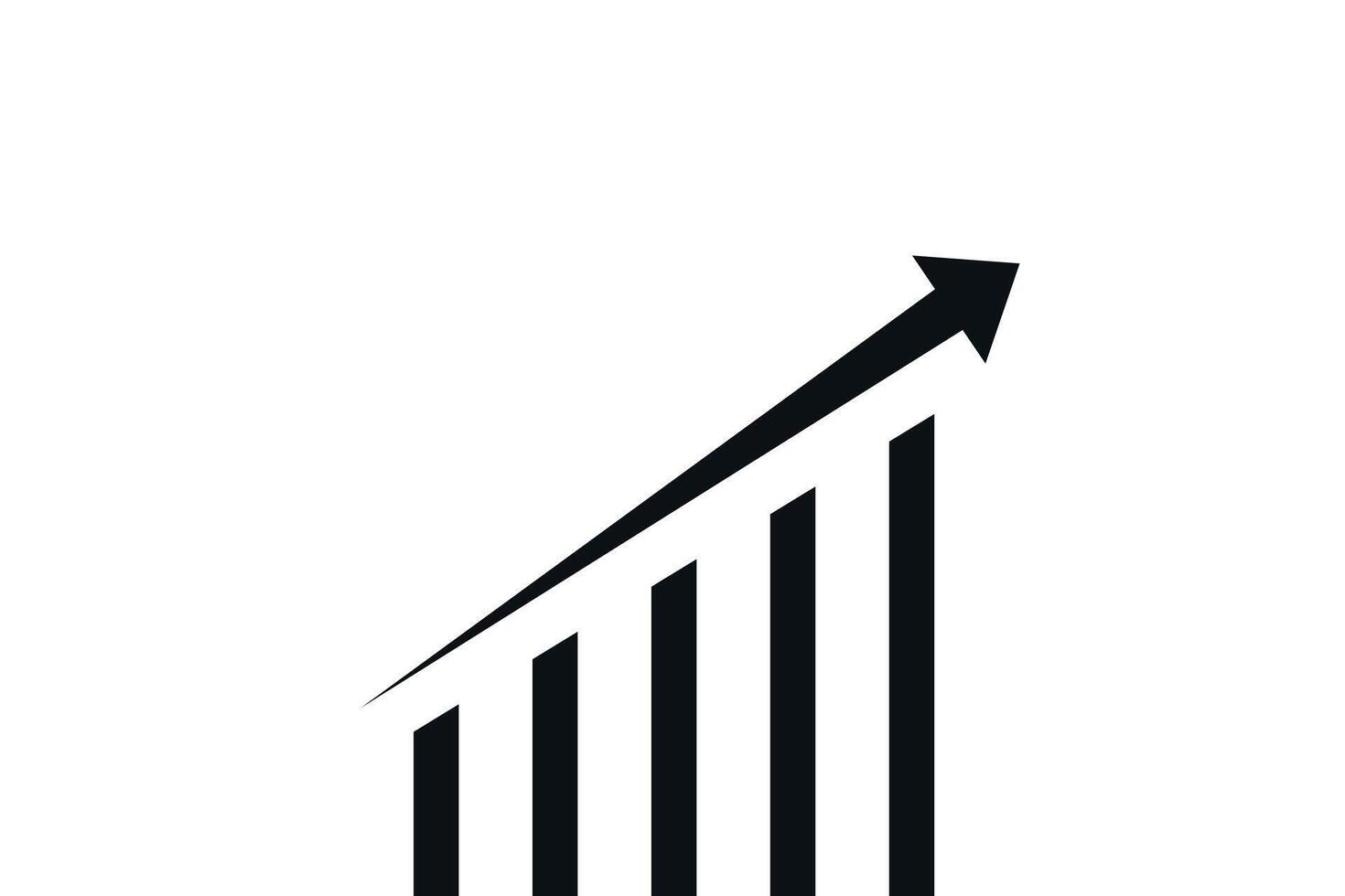 Minimal black growth bar chart icon with upward arrow symbolizing success, increase, and progress Pro Vector