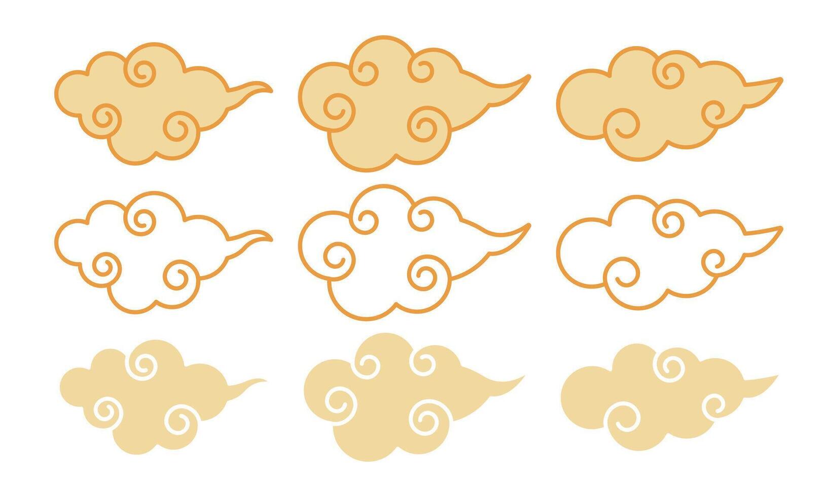 Set of Chinese style clouds with swirling patterns Pro Vector