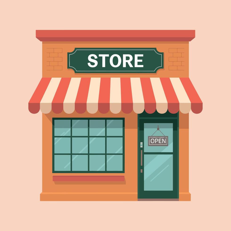 Charming Store front with Awning and Open Sign Inviting Customers to Browse and Shop in a Welcoming Environment vector