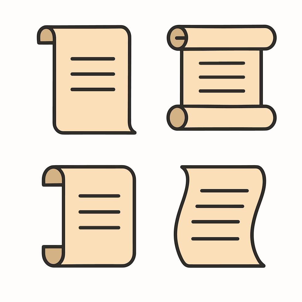 Minimalist Handdrawn Paper Scroll Set Icon in Various Shape Style Pro Vector