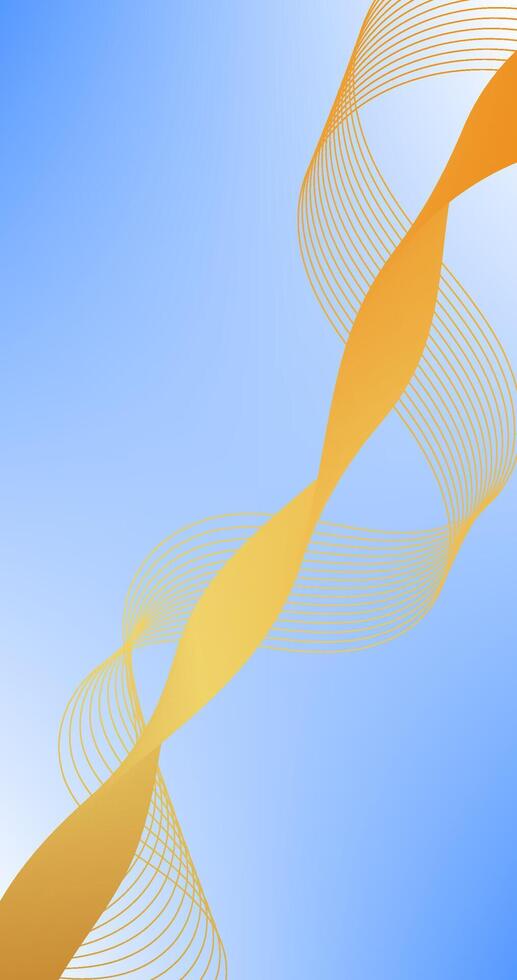 Gradient abstract background with Gold wavy lines on blue sky Vertical Design Pro Vector