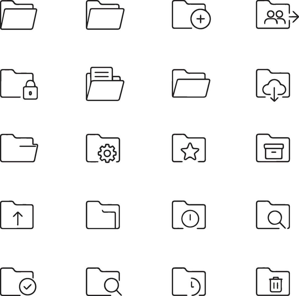 Folder Icon Set , File Management, Cloud Access, Security And Organization Line Icons Collection. vector