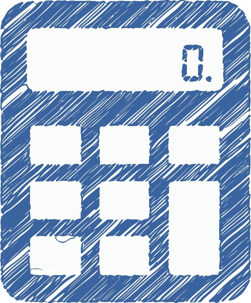 Hand-drawn blue calculator with digital display showing zero Pro Vector