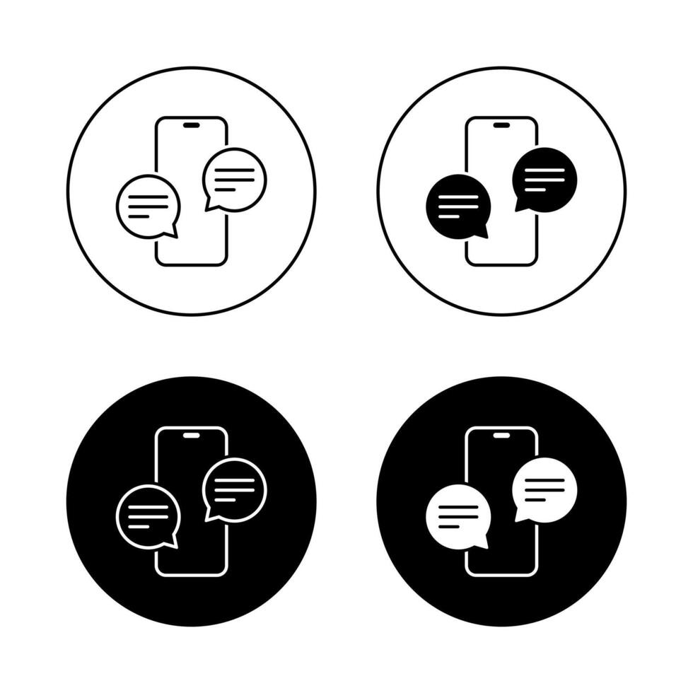 Chat message icon on smartphone screen. Text conversation phone symbol in black circle Pro Vector