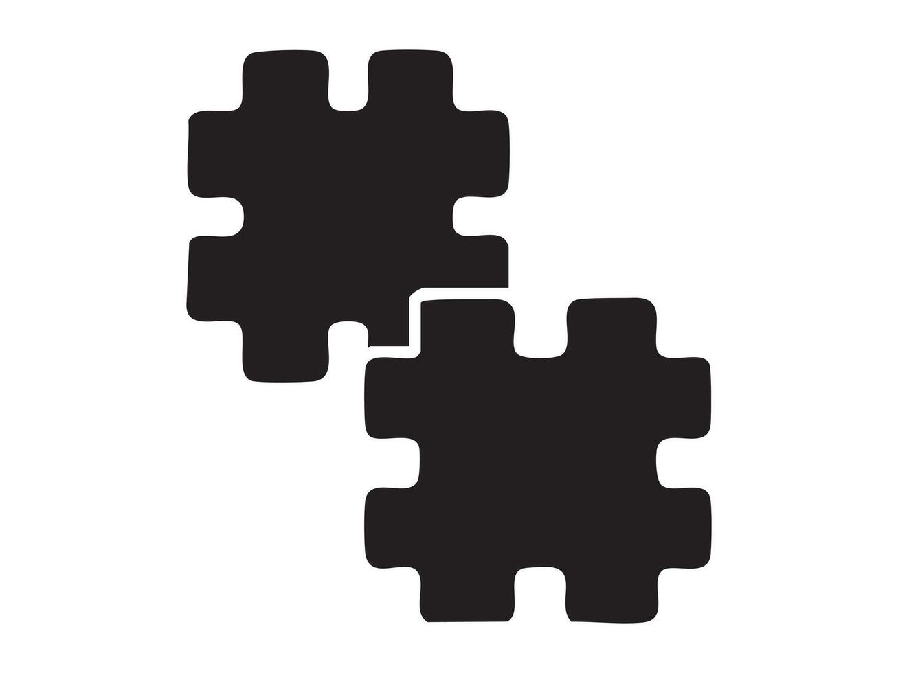 Black silhouette of two puzzle pieces, isolated on white background. concept of problem-solving, teamwork, connection, game element, icon design, strategy, education Pro Vector