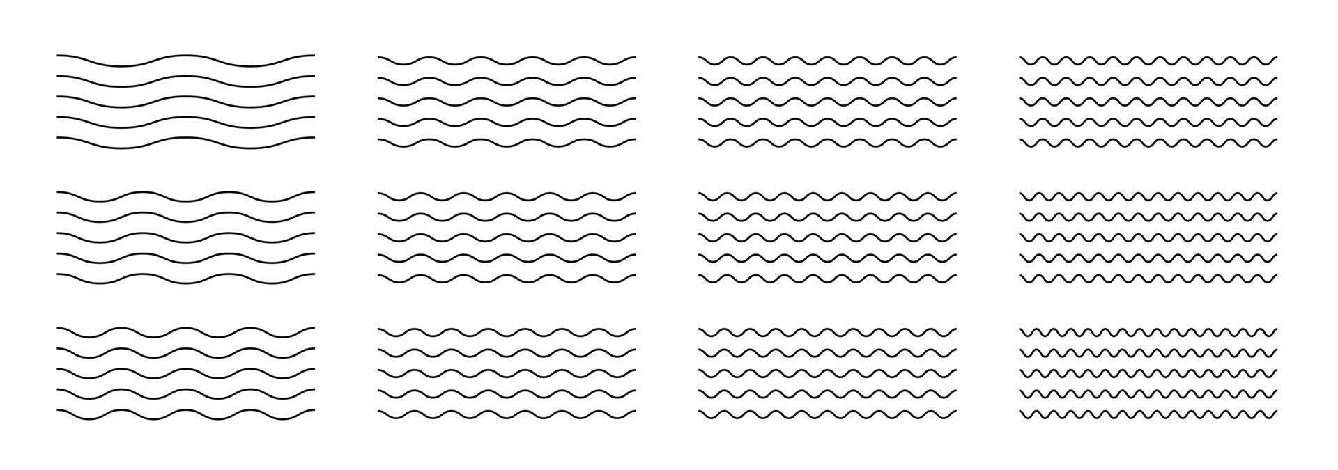 Wavy squiggle and zigzag line set with abstract ripple patterns. Fluid curves, jagged strokes and sine elements create seamless waves for stylish dividers or edgy backgrounds. Pro Vector