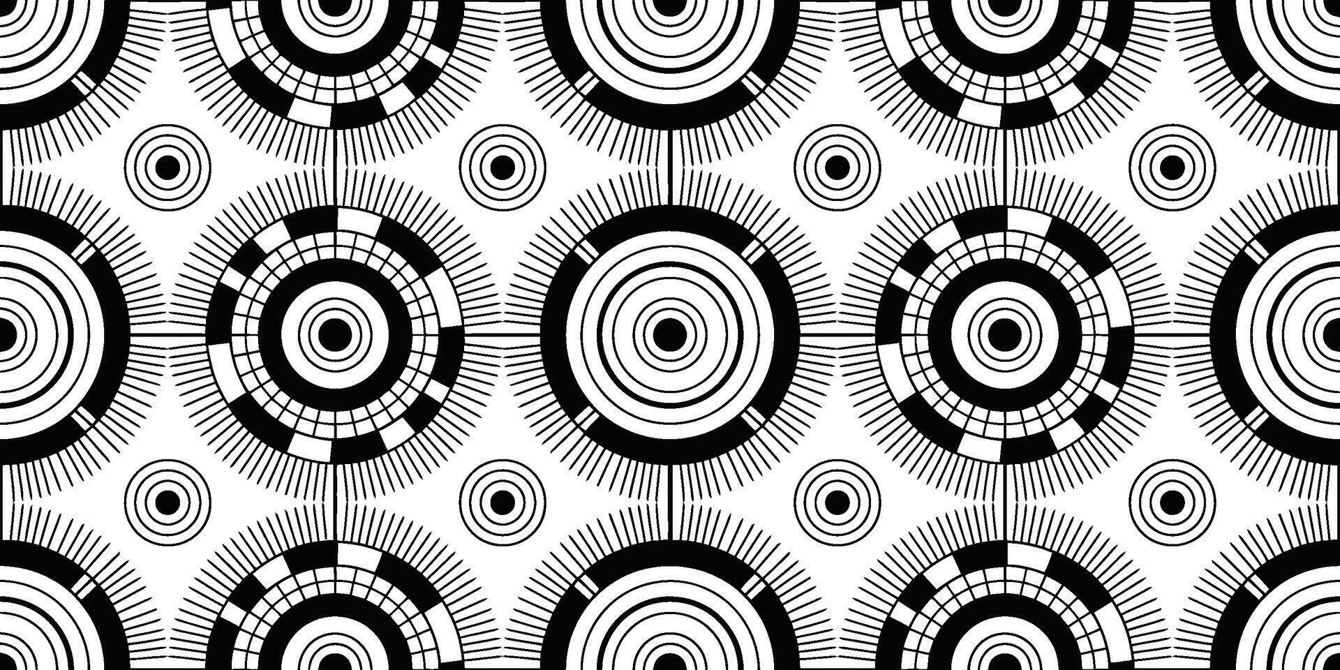 Seamless pattern of black and white circles and radiating lines design art Pro Vector