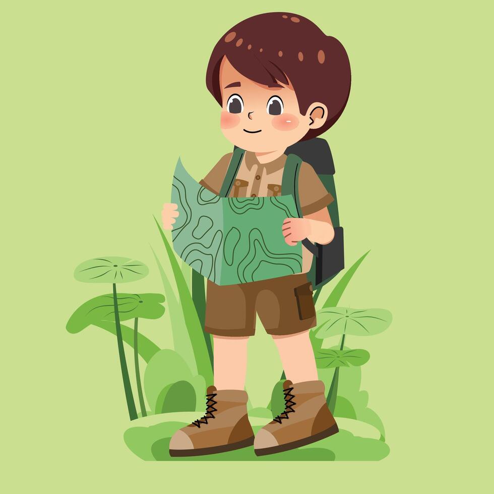 A Boy Exploring the Outdoors with a Map Pro Vector