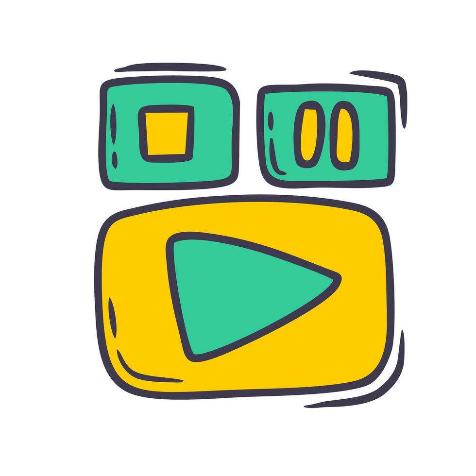 Doodle Media Play Button Set Icon with Stop and Record Symbol Free Vector