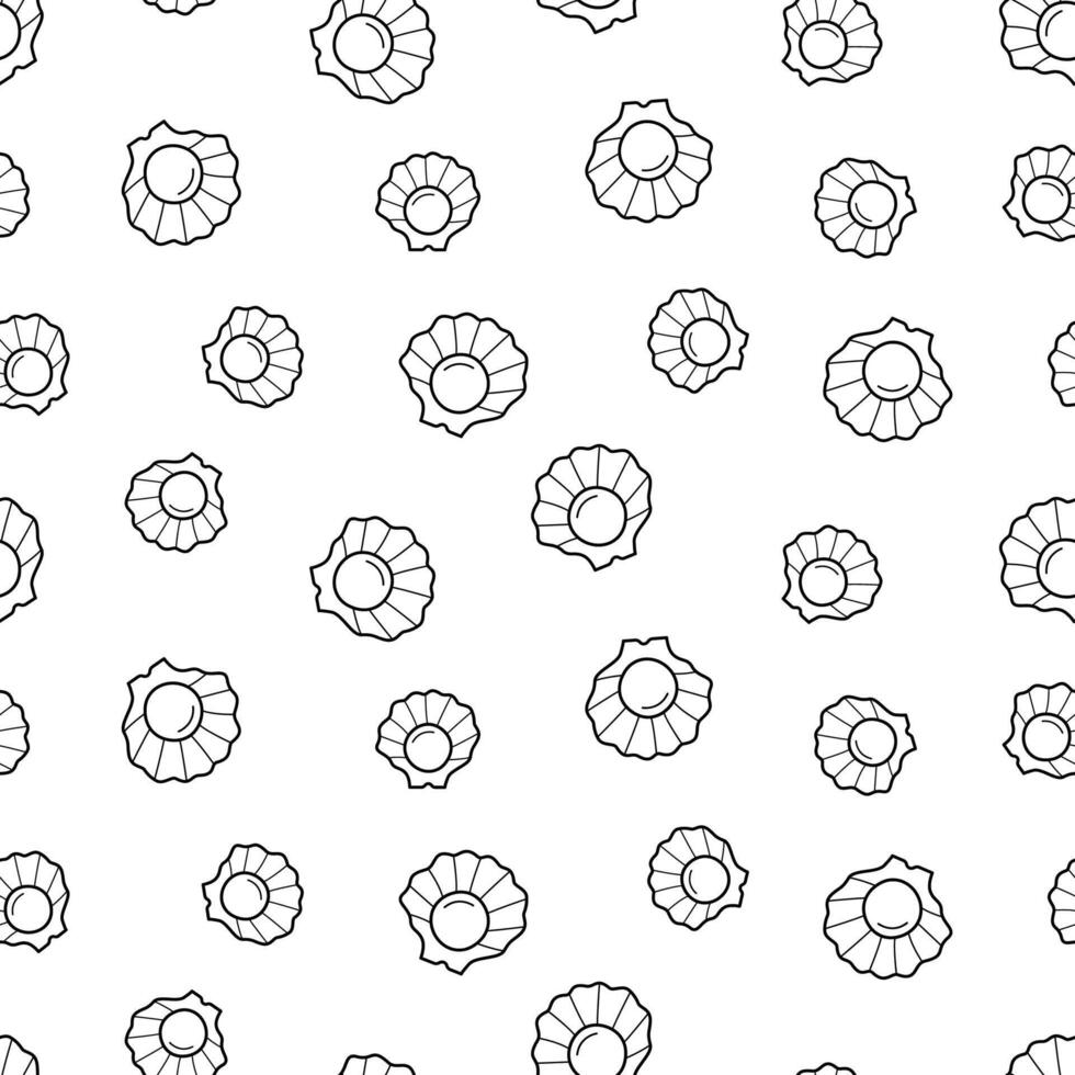 Seamless pearl pattern in an open shell doodle style. background cartoon pearls Pro Vector