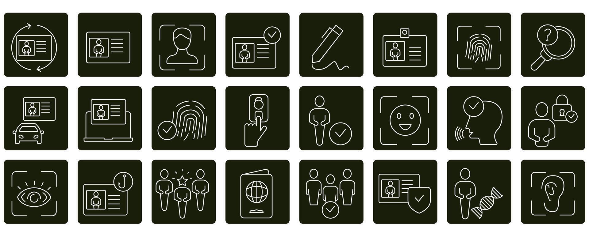 Identity icons set. Set of editable stroke icons.Set of Identity Pro Vector