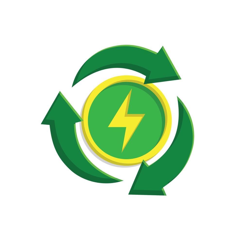 Recycle icon. Sustainability . Three recycling arrows with an energy symbol in the center. net zero, green energy, web icon. Isometric design style. Pro Vector