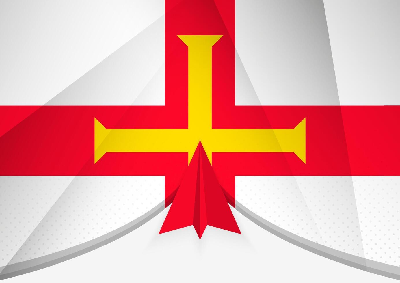 Guernsey Flag with Abstract Paper Airplane Design, National Flag in a geometric folded paper style. Pro Vector