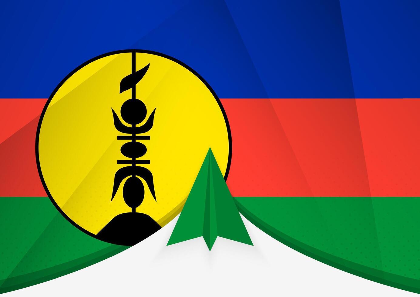 New Caledonia Flag with Abstract Paper Airplane Design, National Flag in a geometric folded paper style. Pro Vector