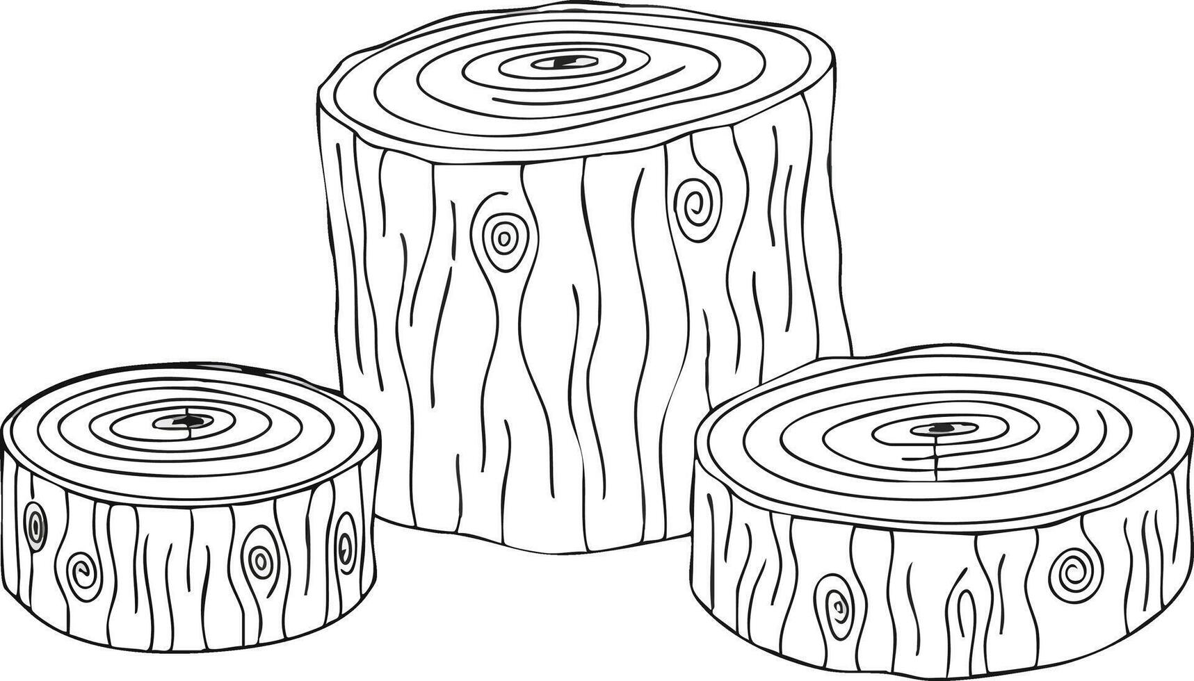 Tree stump and wooden logs with natural bark texture line art illustration for design and craft projects Pro Vector