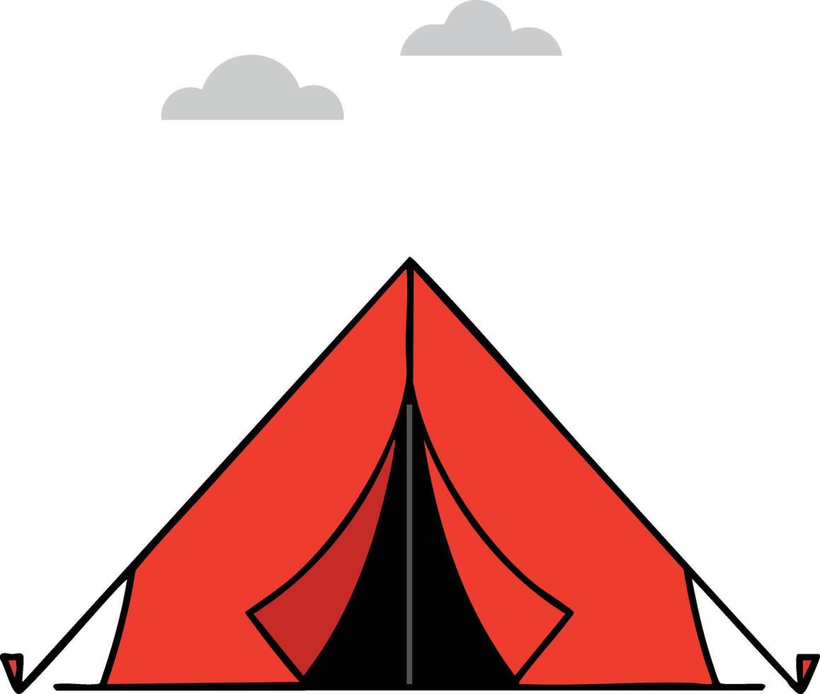 Red Camping Tent Illustration with Simple Cloud Elements in Minimalist Style Pro Vector