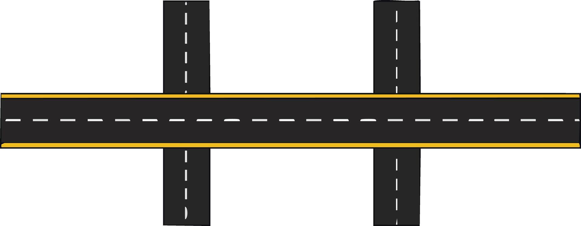 Road intersection with two vertical roads crossing horizontal highway illustration in simple style Pro Vector