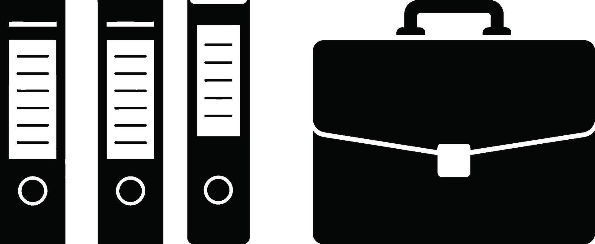 Black Briefcase and Three Ring Binders Icon files folders Pro Vector