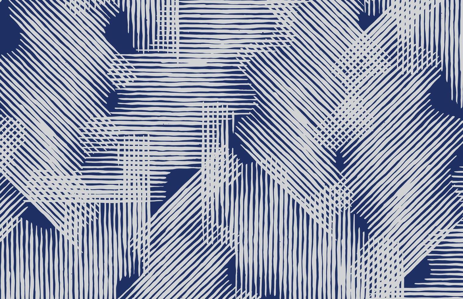 Hand drawn brush lines abstract geometric pattern with intersecting lines in blue and gray. Organic imperfections add texture, ideal for textiles, wallpapers, and modern design. Pro Vector