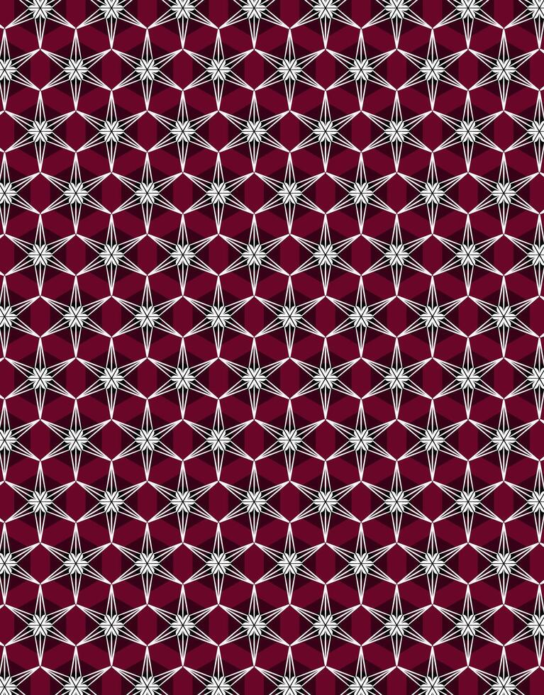 Burgundy Hexagonal Sakura Pattern with Star Shadows Japanese Inspired Design Pro Vector