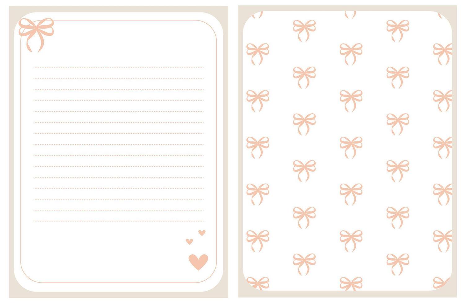 A set of a cute notebook page and a pattern with bows. Romantic flat style. Pro Vector
