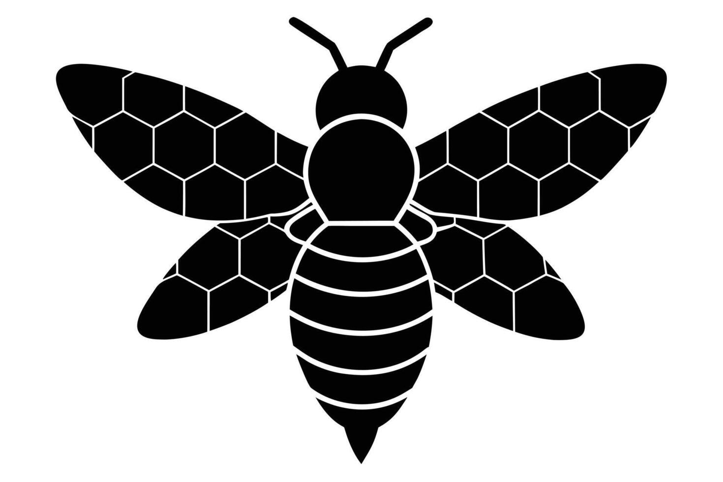 Isolated Black Honeybee Featuring Honeycomb Pattern on Wings and Segmented Abdomen Pro Vector