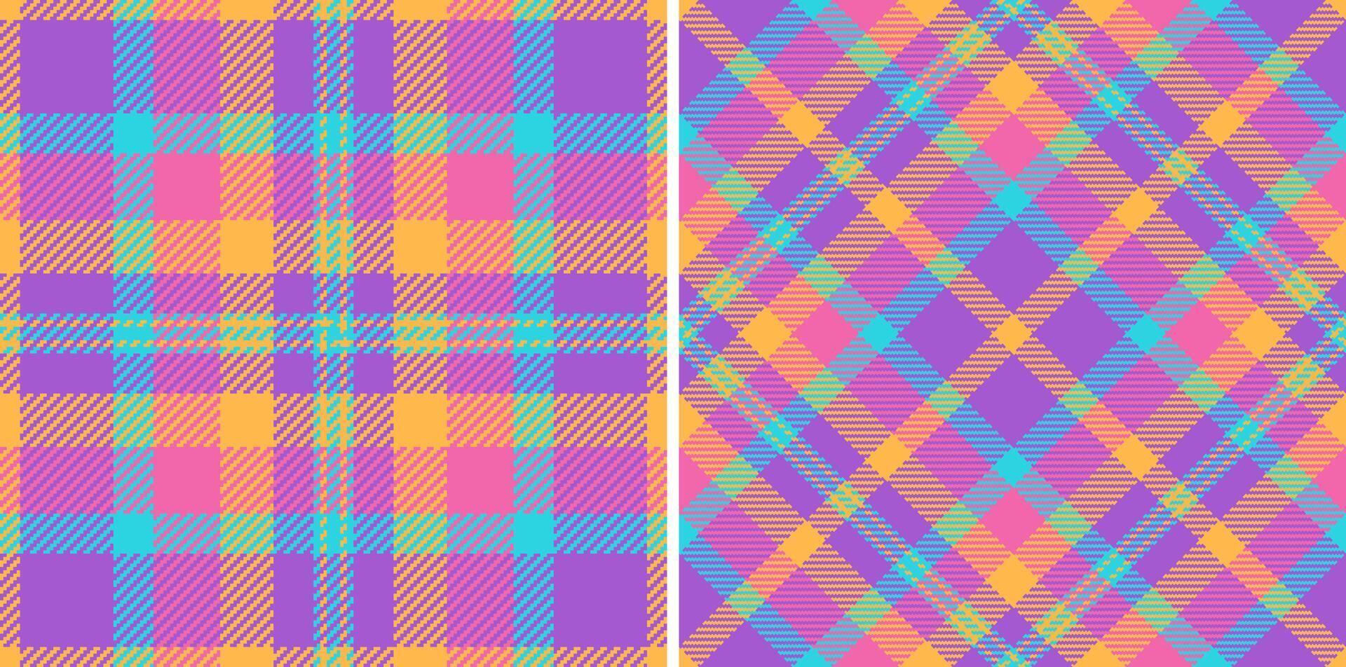 Vibrant pastel plaid patterns, perfect for textile design, fashion, or web backgrounds. Two distinct yet complementary styles offer versatility. Pro Vector