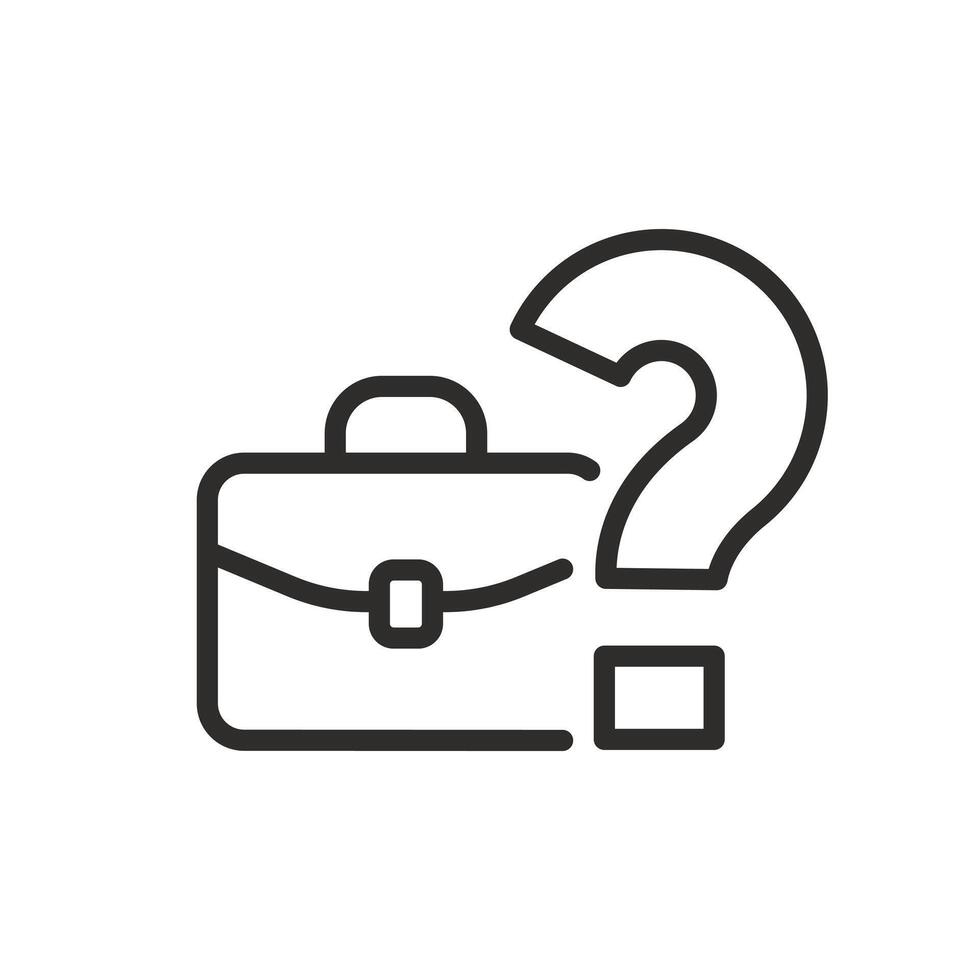icon of question mark with portfolio, unknown amount of work, career choice, thinking or search about next job, thin line symbol on white background - editable stroke illustration Pro Vector