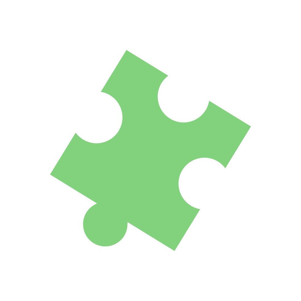 Flat green jigsaw puzzle silhouette. Single puzzle piece with clean shape and simple design. Recreation and table game concept, graphic element for children boardgame, toy or hobby usage. Bright Pro Vector