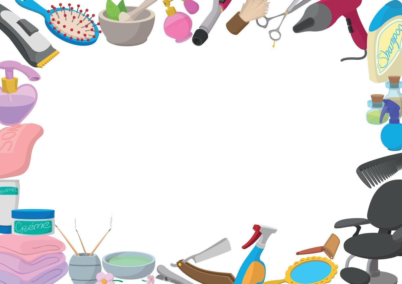 Hairdressing tools forming a frame with white background Pro Vector