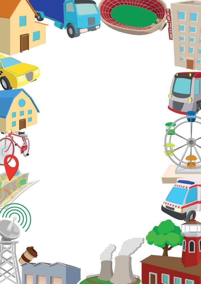 Infrastructure icons frame surrounding copy space representing urban life Pro Vector