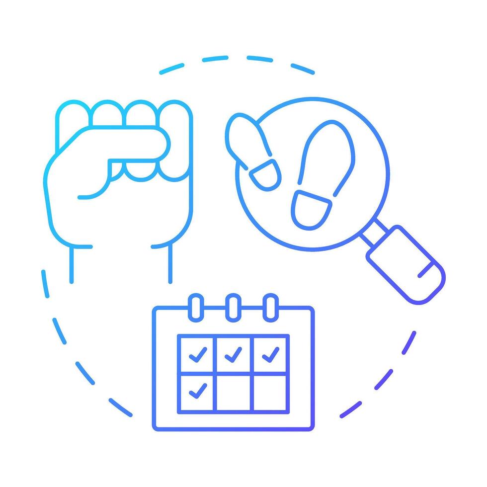Behavioral blue gradient concept icon. Time management. Schedule, planning. Tracking, analysis. Round shape line illustration. Abstract idea. Graphic design. Easy to use in article, blog post Pro Vector