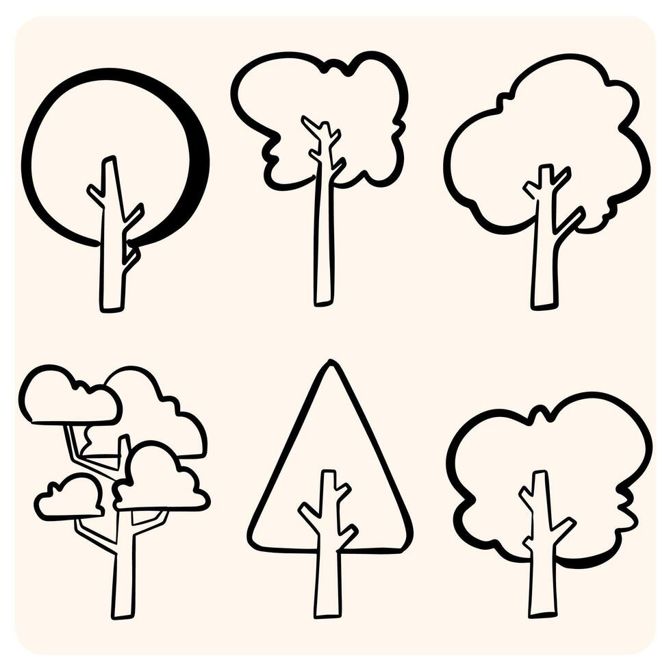 Hand-drawn simple tree doodles. A set of different cartoon-style trees with unique shapes, perfect for nature and environment themes. vector