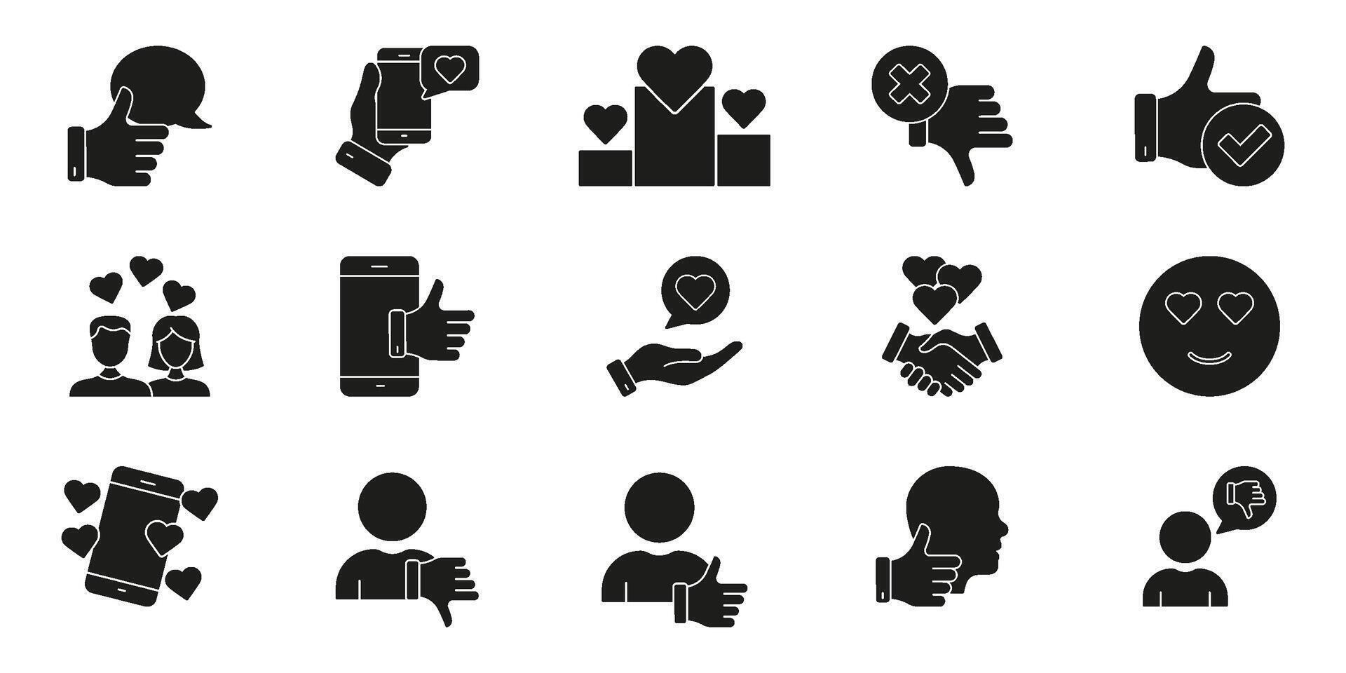 Social Media Engagement And Feedback Silhouette Icons Set. Digital Interaction, Communication, And Approval Symbol Collection. Online Networking And User Experience. Isolated Illustration Pro Vector