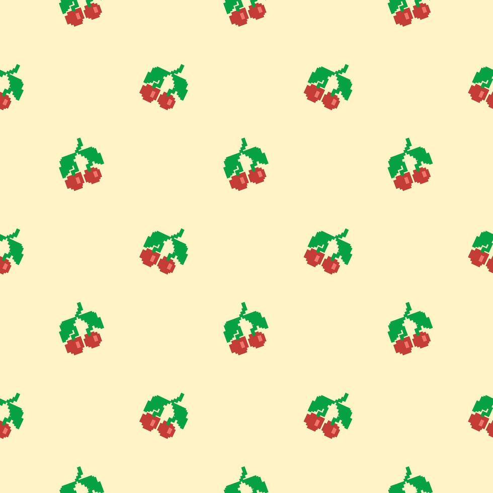 Seamless pixel pattern with cherries and cream background. Pixel art. Pro Vector
