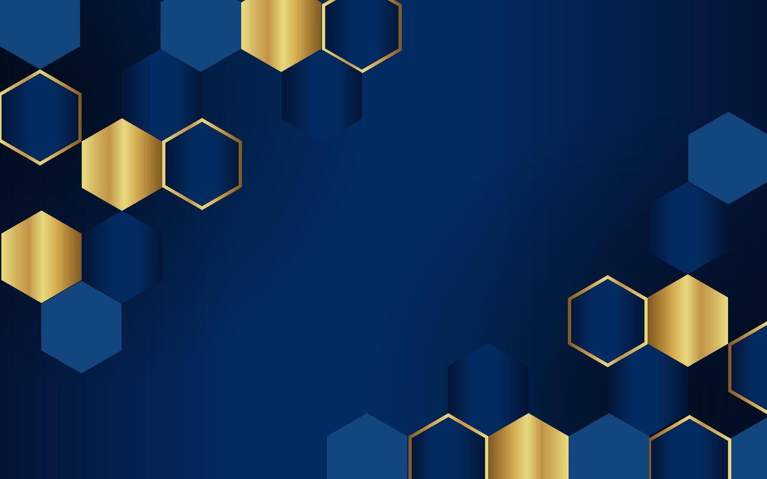 Gradient Hexagonal Blue And Gold Background Pro Vector