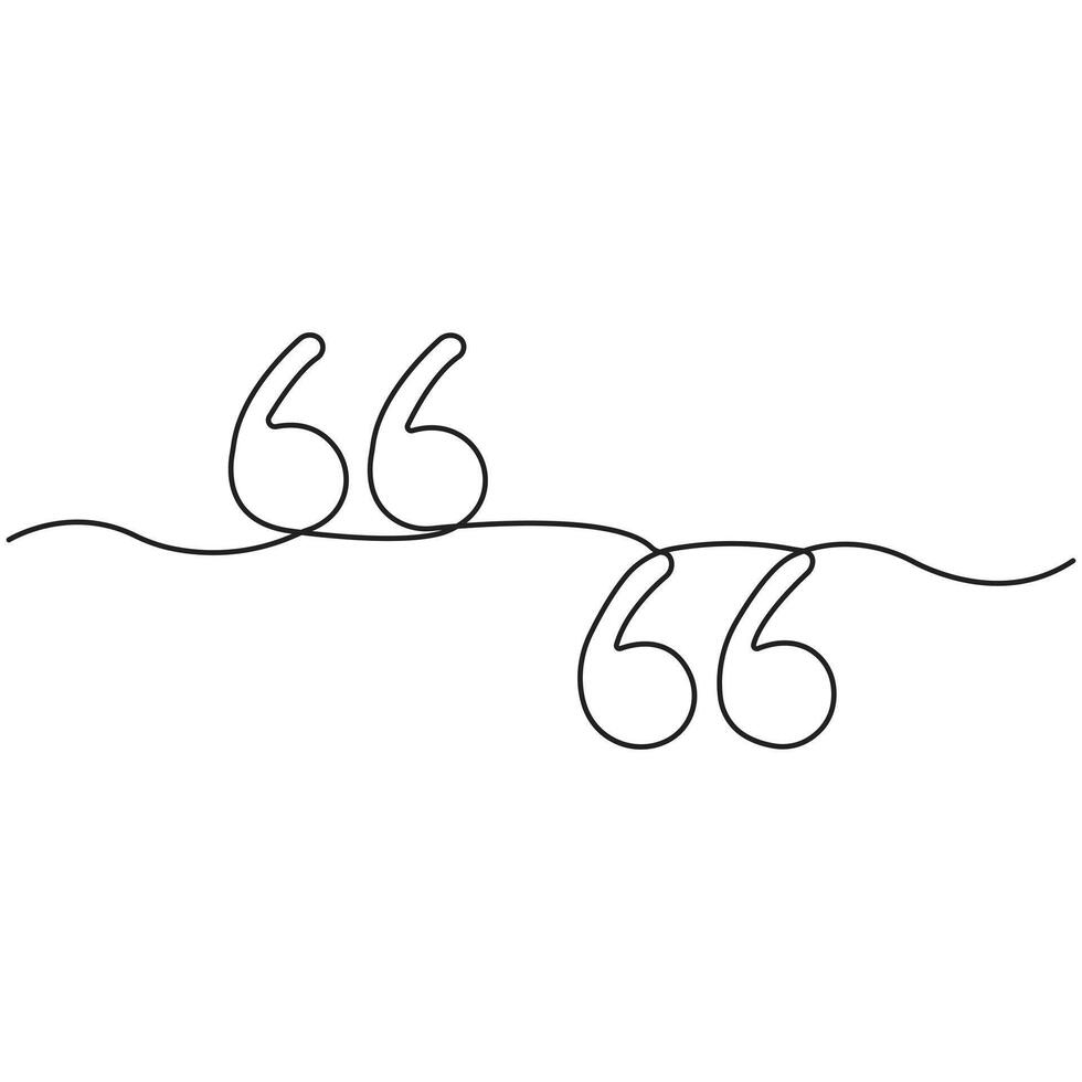 Minimalist continuous line drawing of quotation marks symbolizing speech, conversation, communication, dialogue, ideas, quotes, expression, creativity, literary design, and editorial concept Pro Vector