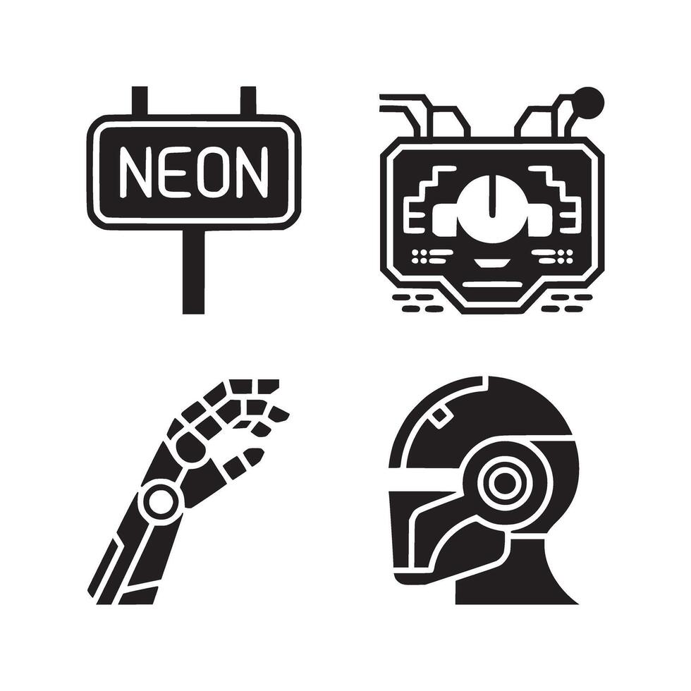 A set of icons that include a robot, a sign and a robot Pro Vector