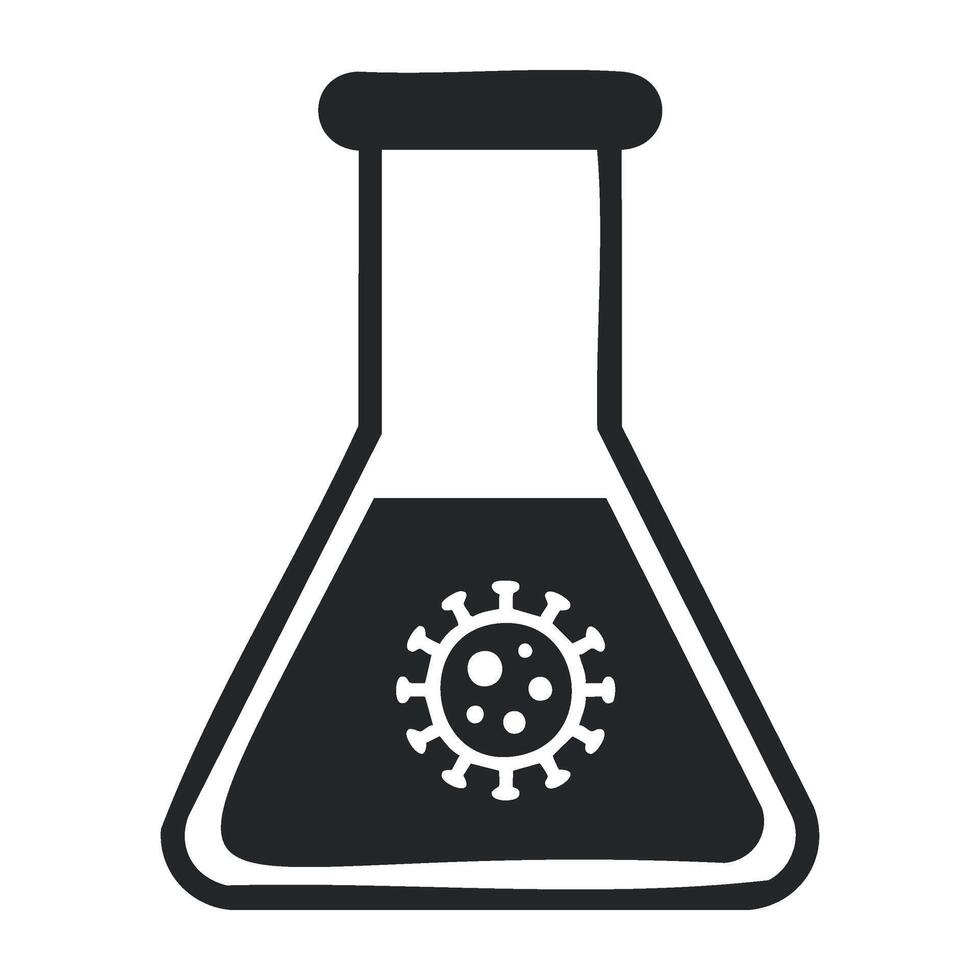 Laboratory flask with virus icon symbolizing scientific research and biochemistry Pro Vector