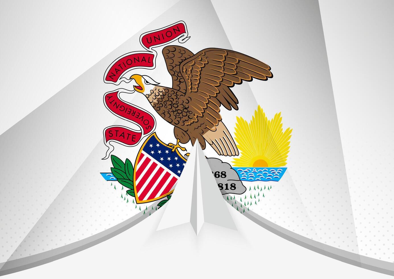 Illinois Flag with Abstract Paper Airplane Design, National Flag in a geometric folded paper style. Pro Vector