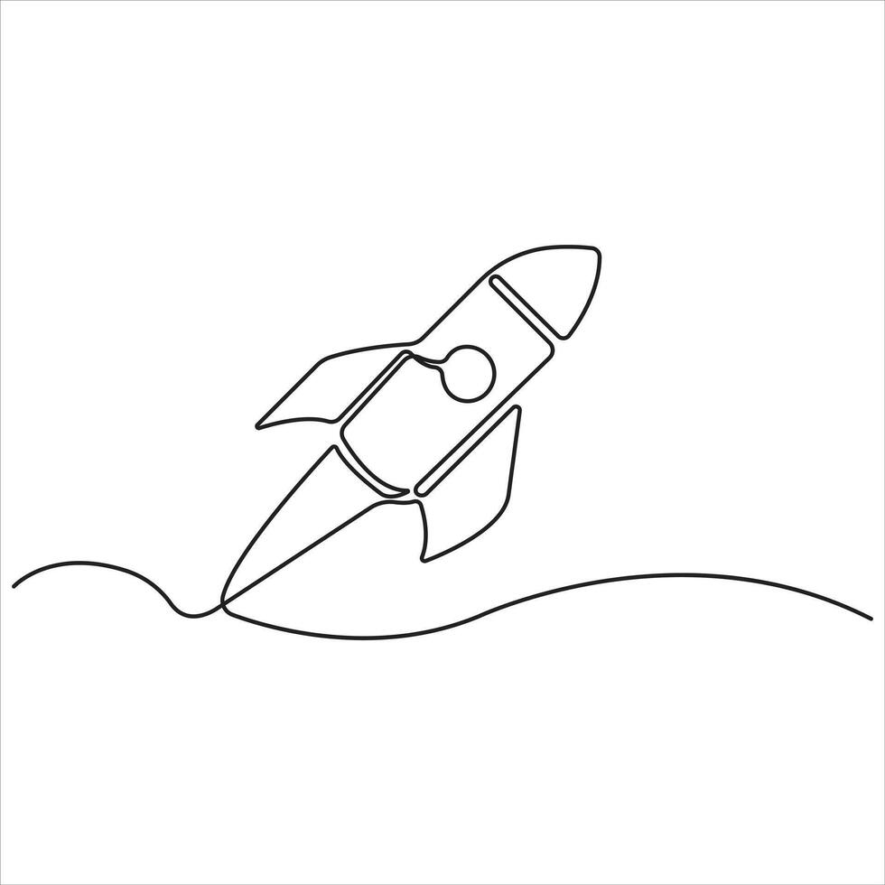 Minimal One Line Drawing of Rocket Launching, Simple Space Ship Icon for Innovation, Start-Up, Success, and Creative Design Concepts. Pro Vector