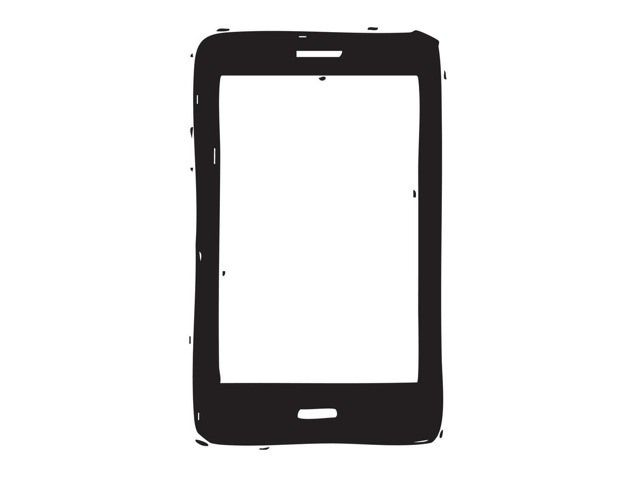 Black silhouette of smartphone icon, blank screen design isolated on white background. concept of mobile device, communication, technology, gadget, digital interface, Hand drawn style Pro Vector