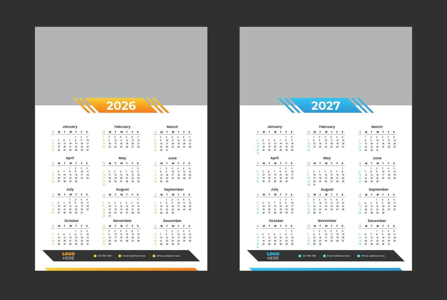 2026 and 2027 calendar template set modern design. set of one page calendar design with abstract shape. Pro Vector